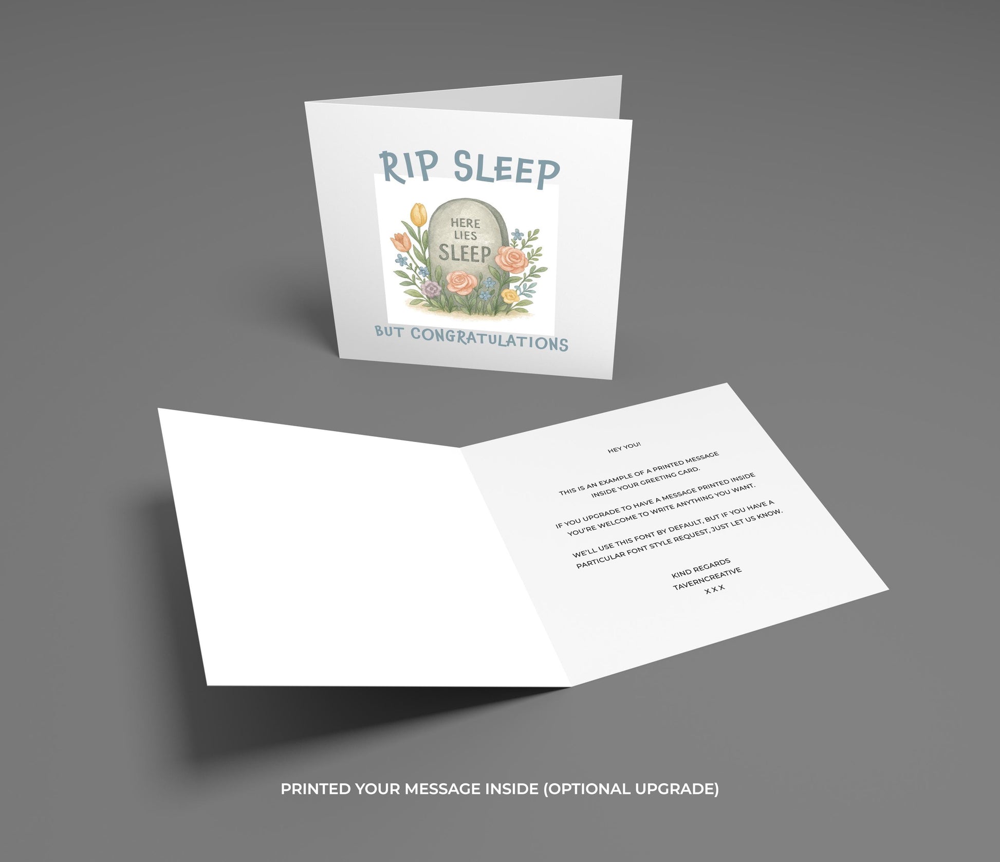 Funny New Baby Card: RIP Sleep, Humorous New Parent Congratulations