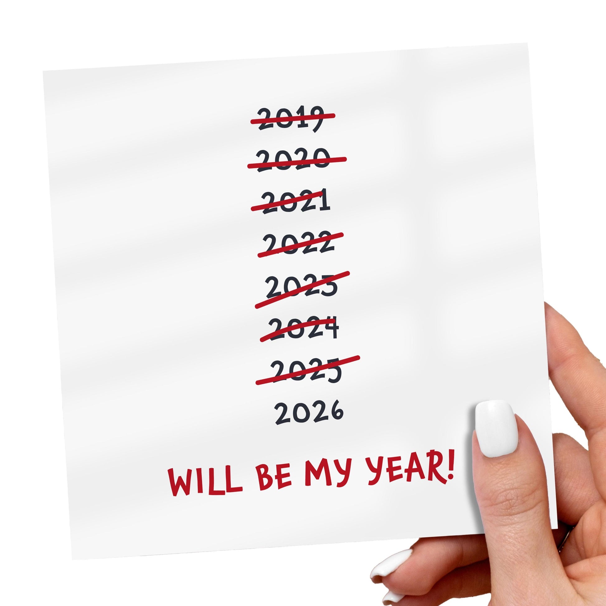 A funny and relatable New Year card for anyone who’s been saying “next year will be my year” since 2019. This minimalist design is perfect for friends, family or colleagues who appreciate a bit of self-aware humour and a hopeful start to the year ahead. Great for New Year’s Eve, goal-setters or just a laugh to kick off 2026.