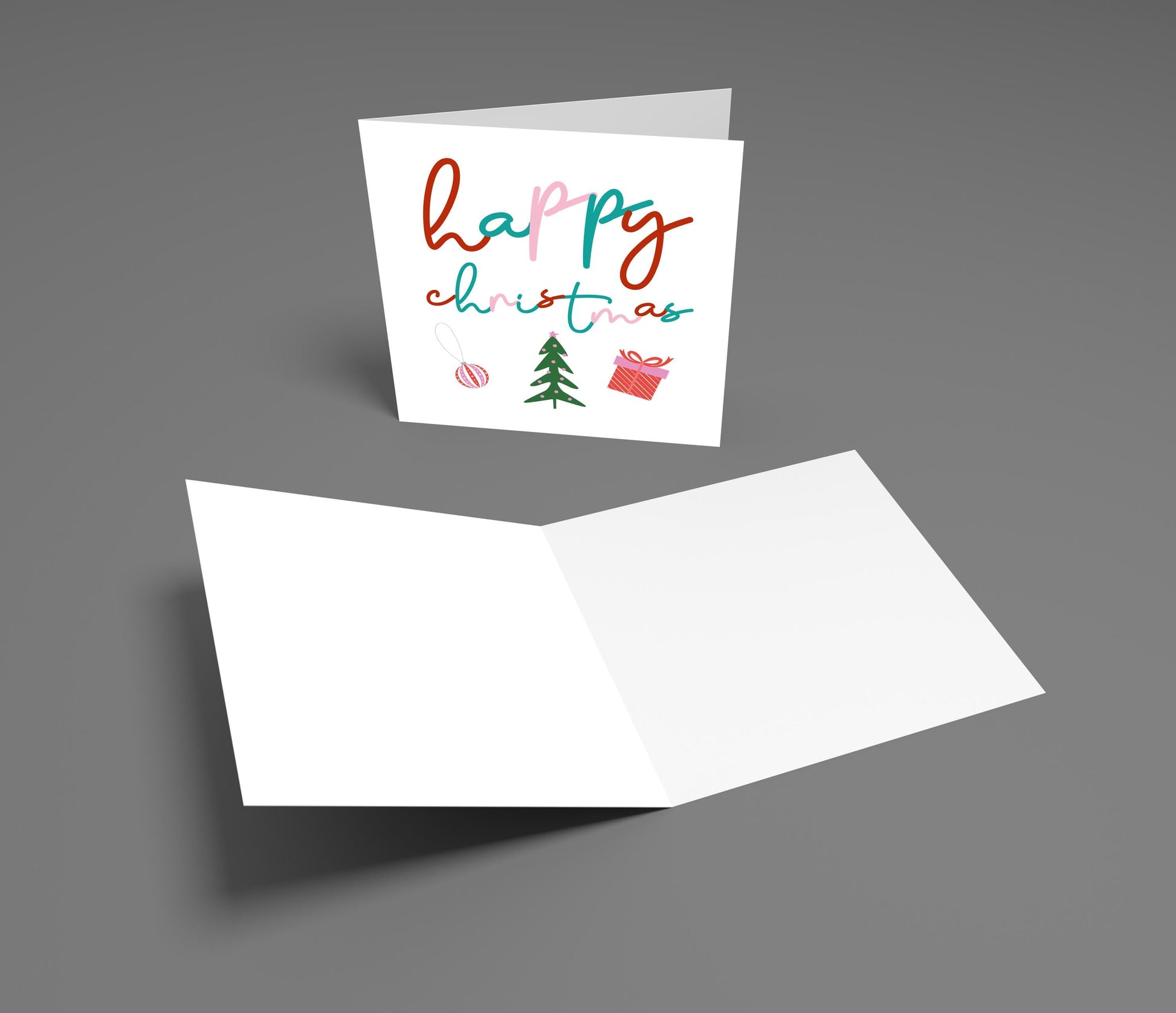 A bright and cheerful way to say Happy Christmas! This colourful card is perfect for friends, family, neighbours or coworkers. With playful lettering and a modern festive design, it’s a simple yet stylish choice that spreads pure Christmas cheer.