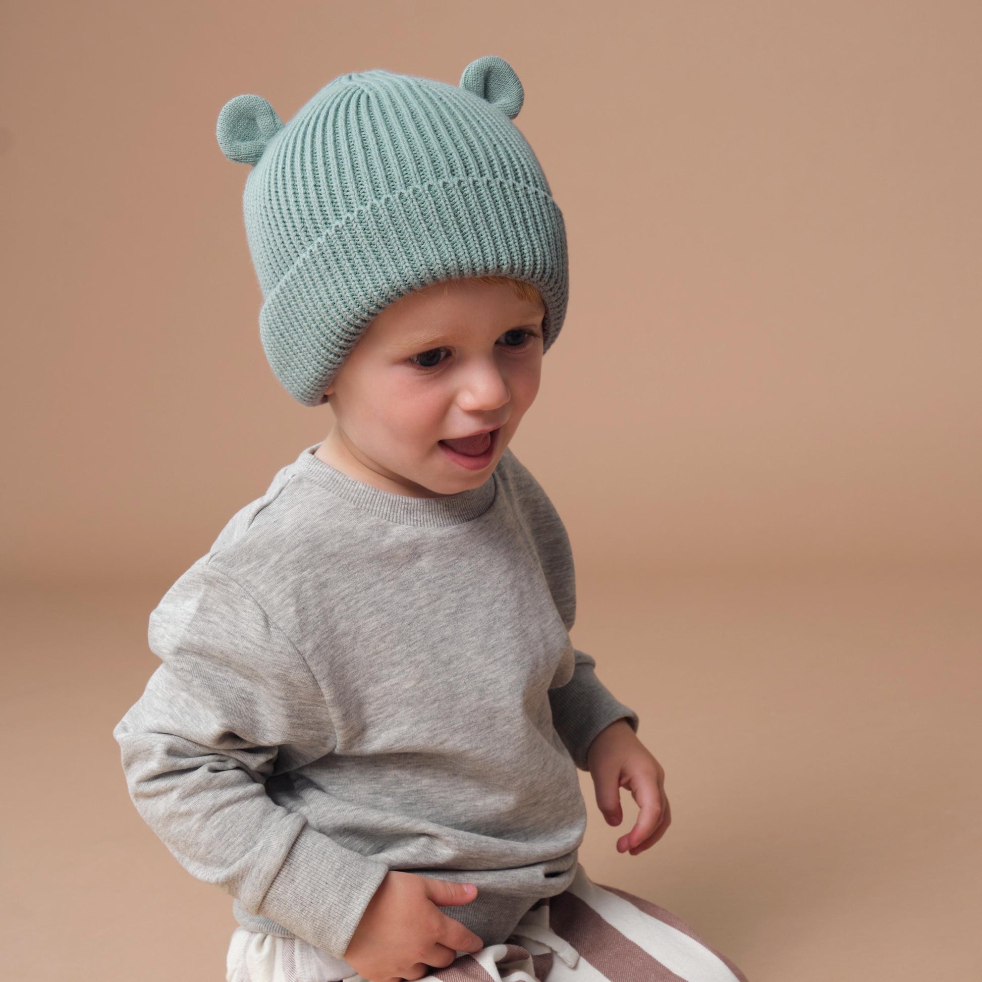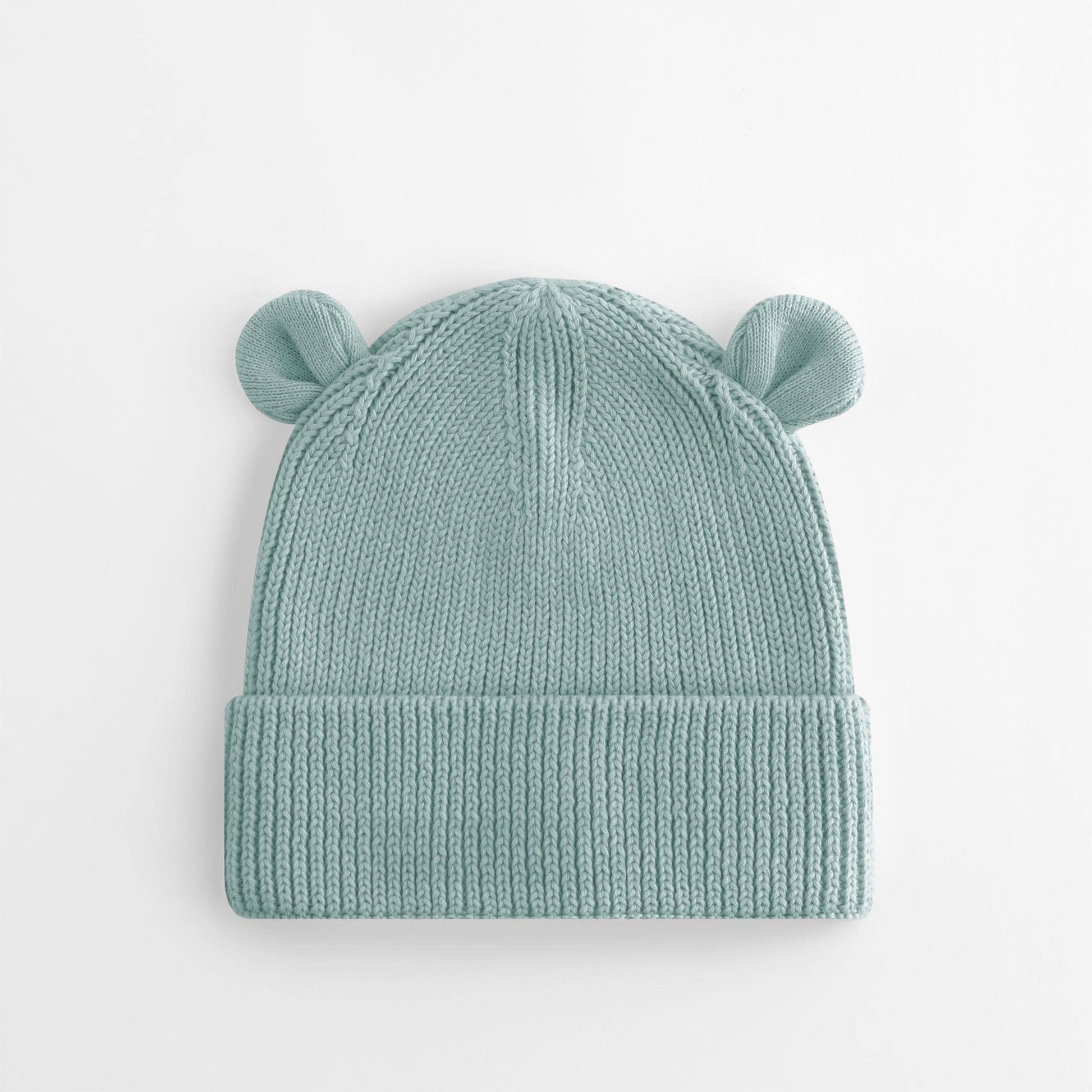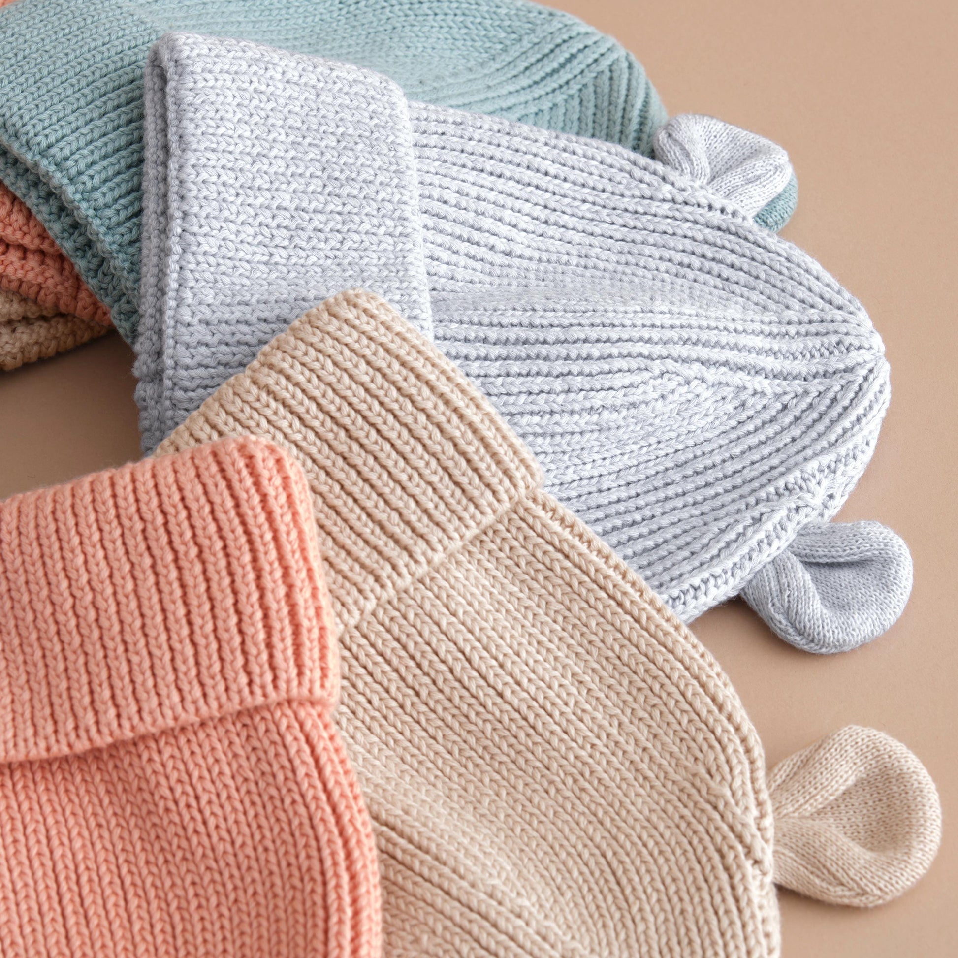 Organic Baby Bear Beanie, Cotton Knit Hat for Babies, Newborn or Toddler Gift