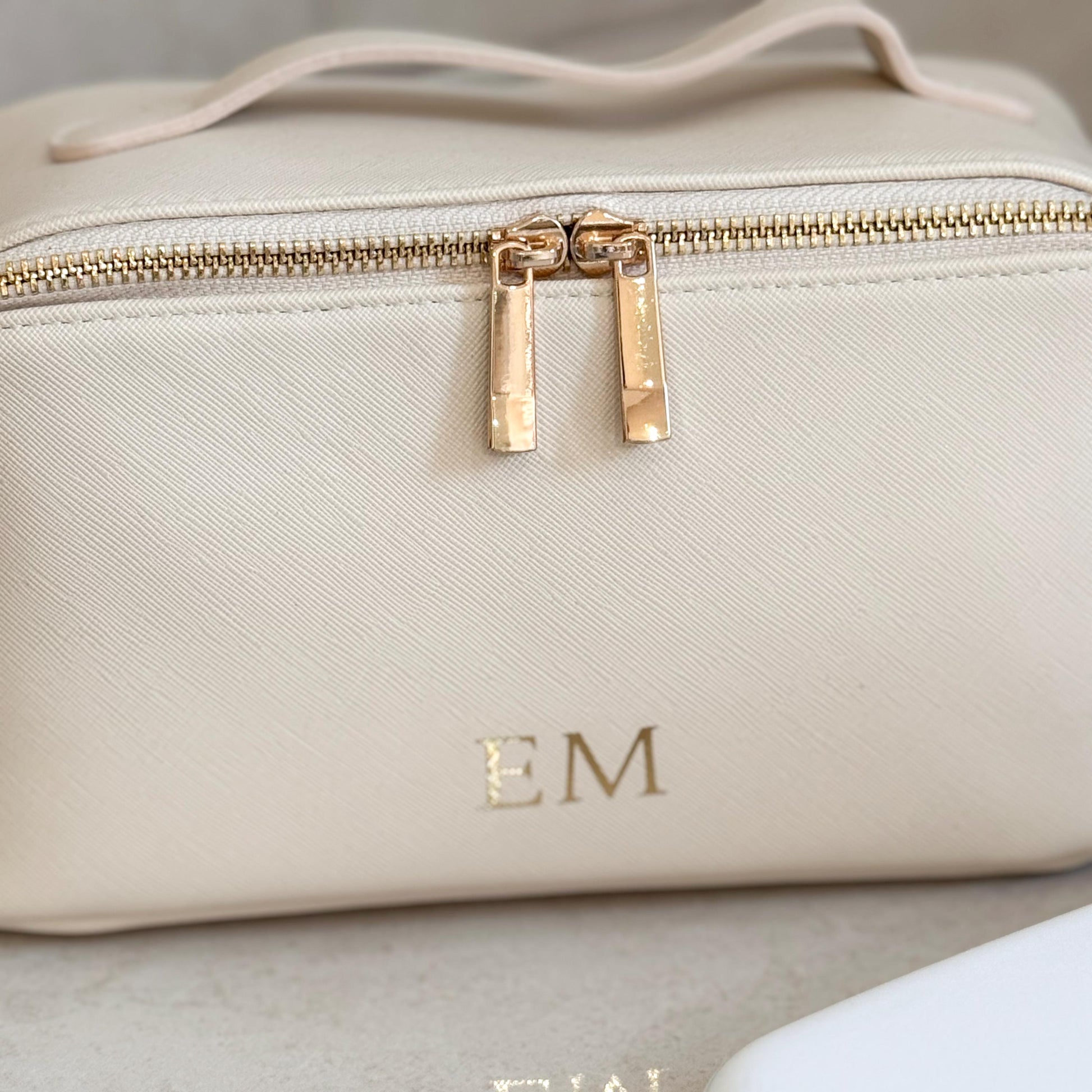 <p><strong>Add initials, a name, or custom wording</strong> in elegant gold print. Perfect as a travel wash bag, make-up bag, or thoughtful personalised gift for any occasion.</p>