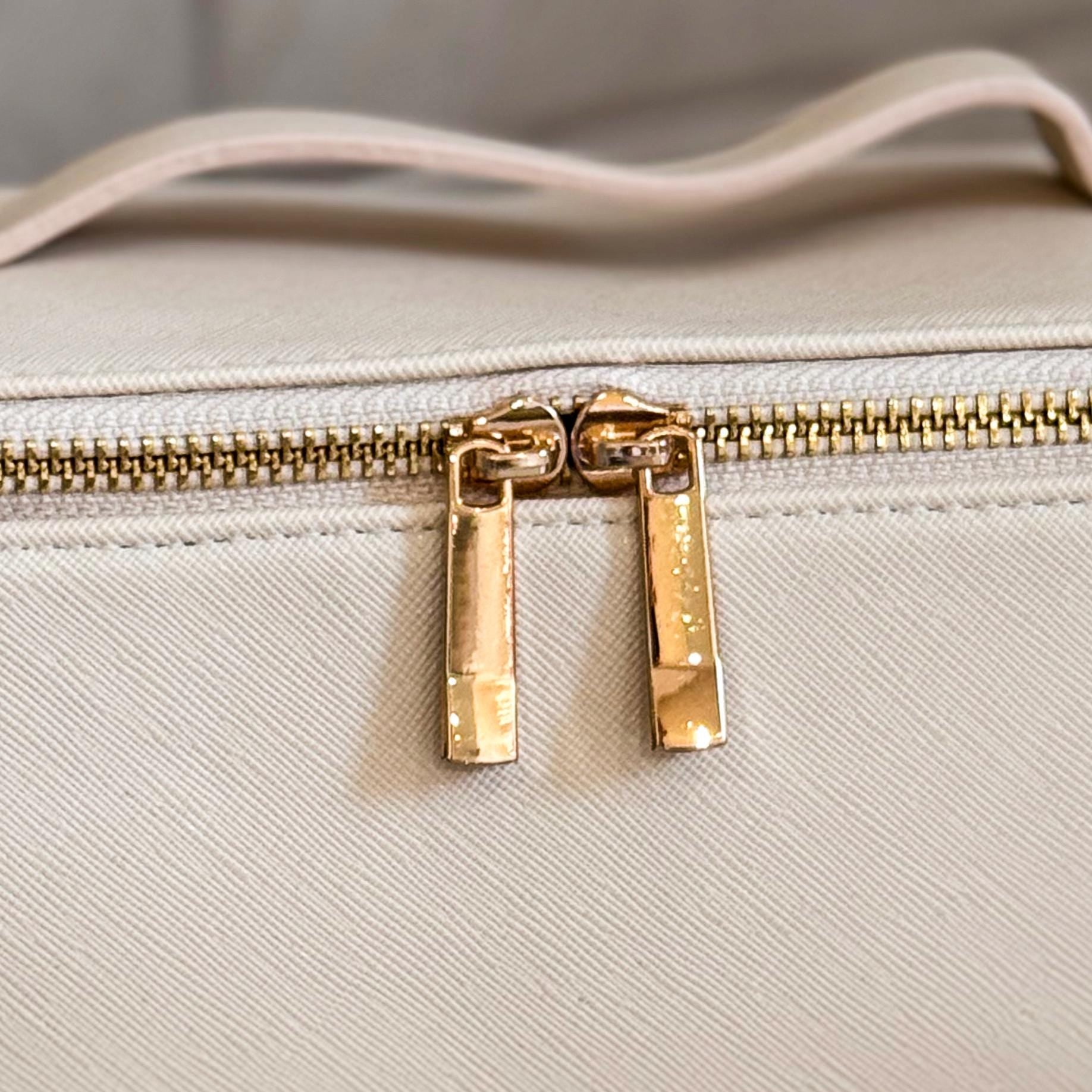 <li><strong>Finish:</strong> Soft-touch lining with gold metal zip and hardware</li>