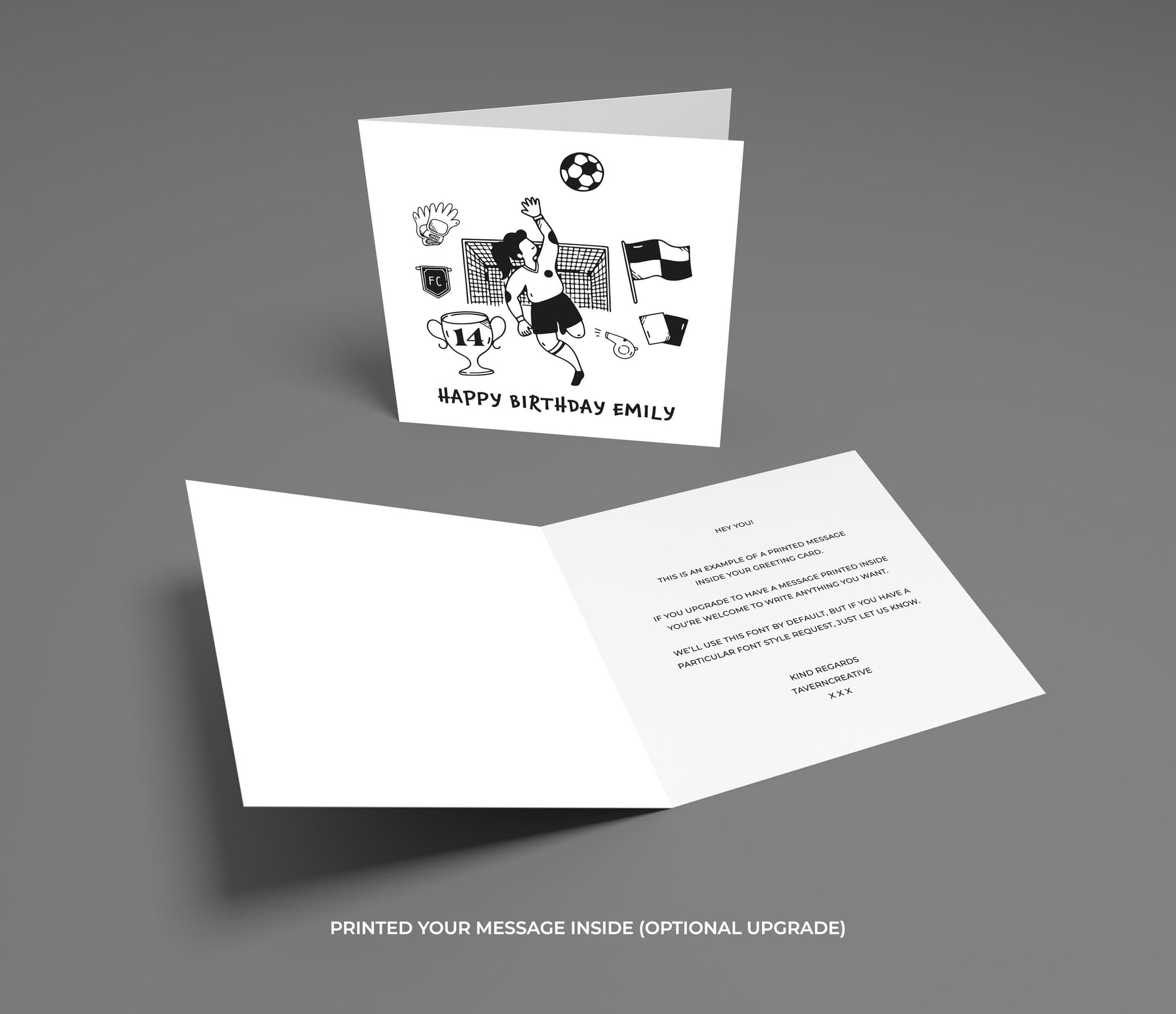 Big saves. Big goals. Big birthday energy. This football card is perfect for girls who run the pitch - especially goalies with quick reflexes and fearless dives. With a bold, sporty design and personal touches like her name and age, it’s made for daughters, nieces, or teammates turning 14 and loving the game.