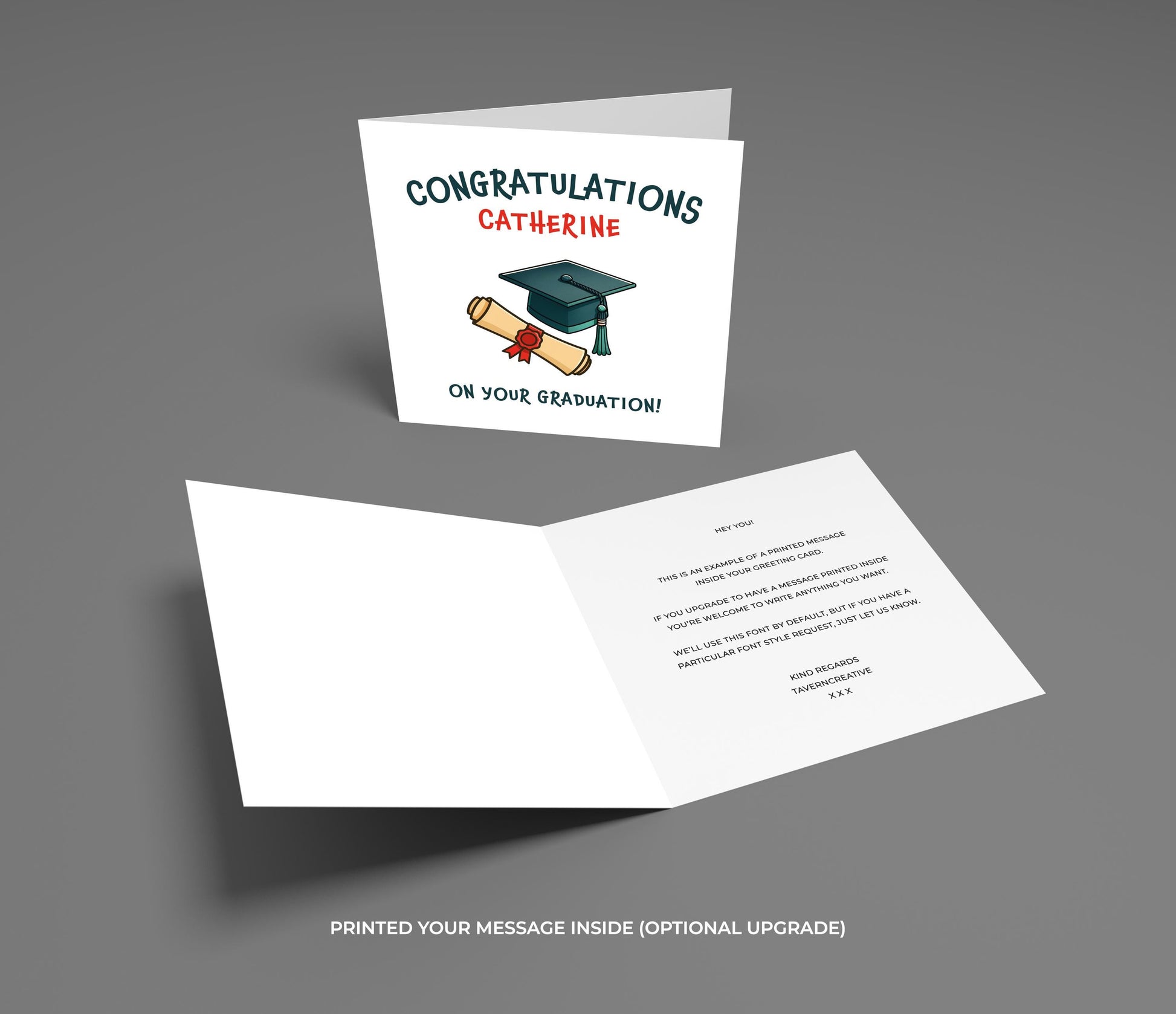 A graduation card worth framing. Add their name for a personal touch and celebrate their big moment in style. With a classic cap and scroll design, this card is perfect for daughters, sons, friends, or any Class of 2025 superstar.