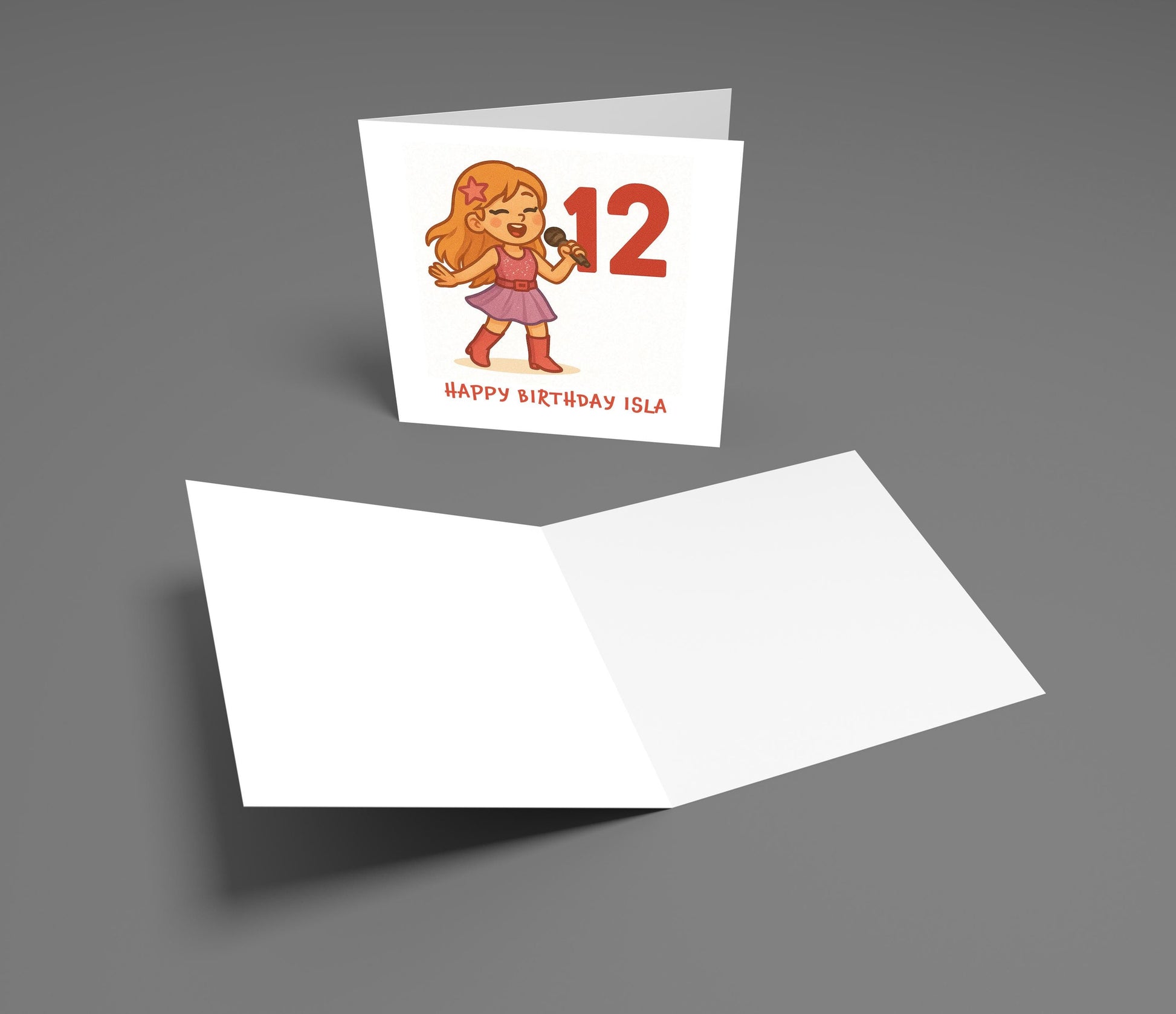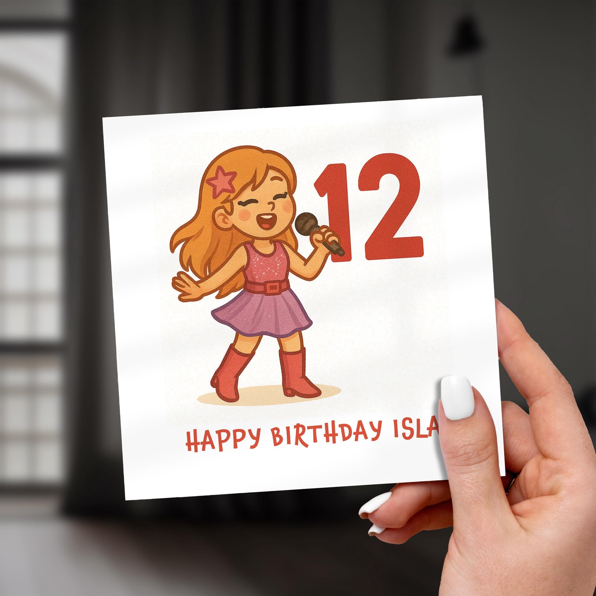 Personalized Popstar 12th Birthday Card for Girl: Music Theme