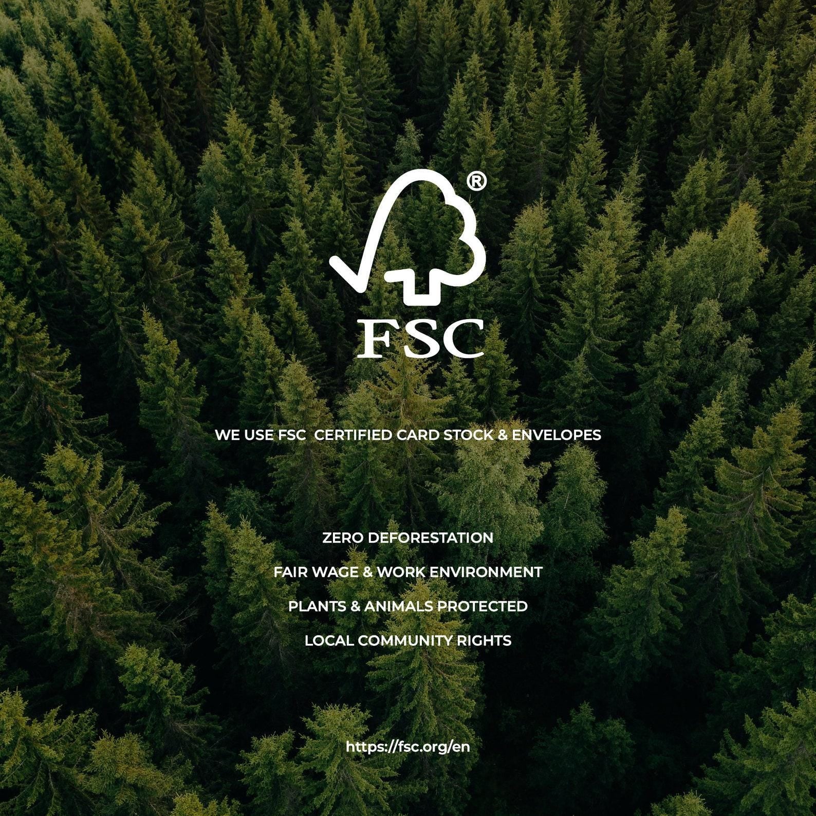 We only use FSC-certified and recycled materials across all cards, envelopes, and packaging. Everything is designed to be thoughtful and recyclable from start to finish.