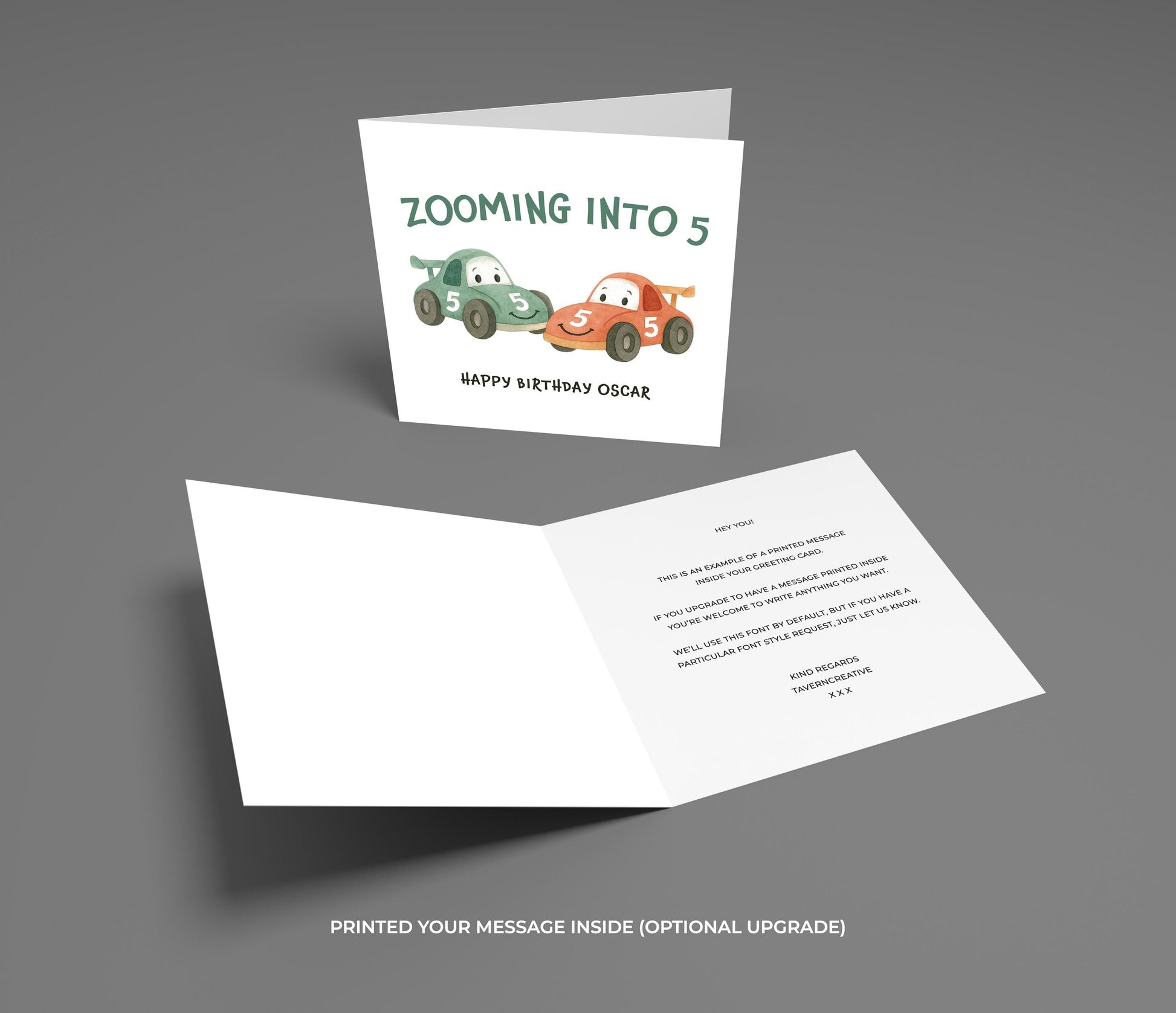 Race Car 5th Birthday Card for Boy: Zooming Into Five